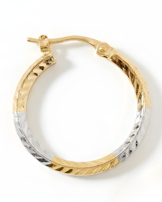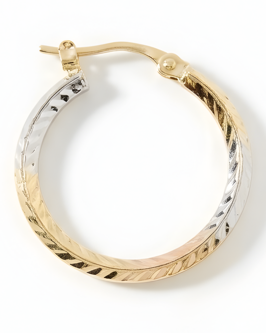 Boucles d’oreilles Créoles Bicolores en Or 10K – Finition Ciselée et Brillante