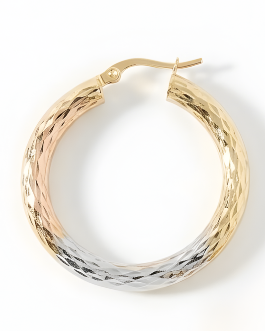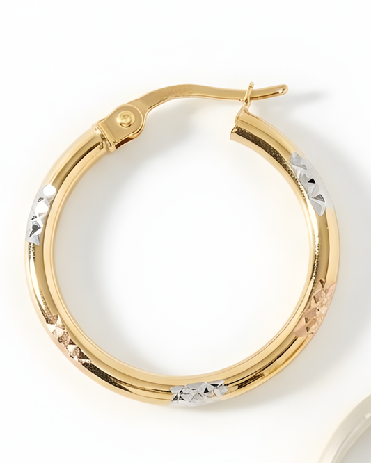 Boucles d’oreilles Créoles Tricolores en Or 10K – Éclat Diamanté