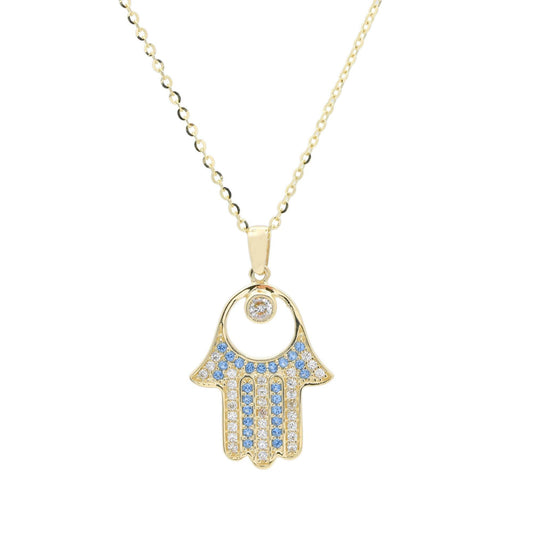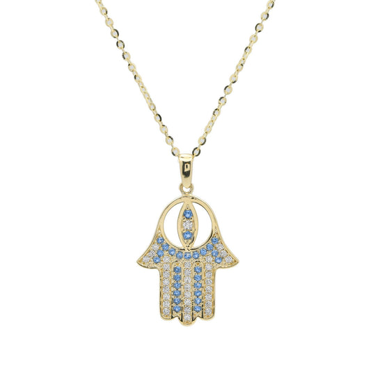 Khomssa necklace | hand of Fatima in 10 carat gold | Round stone