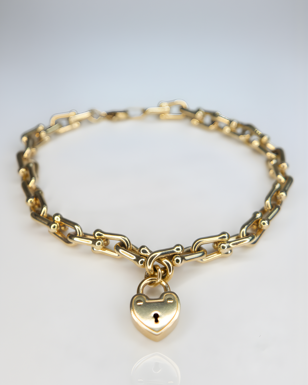 Bracelet Maillons et Cadenas Cœur – Or Jaune 10K