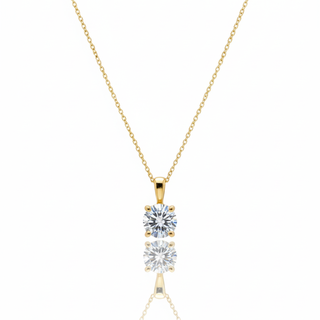Collier en Or Jaune 14K – Diamant Central Lab Grown 1.25 ct